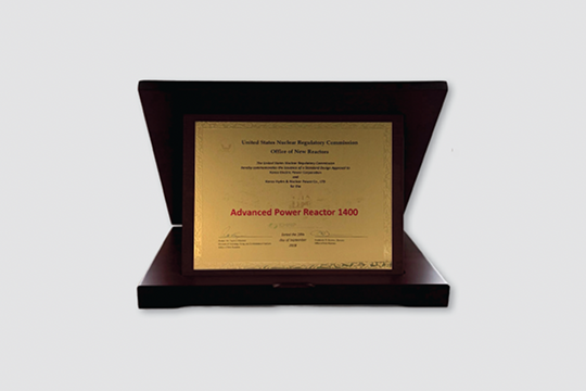 한기는 2011년부터 미국 원자력규제위원회(NRC) APR1400 설계인증(DC) 취득을 준비했다. 2018년 9월 28일 미국 외 국가 최초 표준설계승인을 획득함으로써 세계 원전시장 진출 기반을 마련했다.