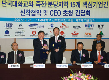단국대는 전국 최초로 지역내 대단위 산학협력체결을 통해 향후 학생 인턴십, 현장실습 프로그램을 기업과 공동개발하고, 각 기업체들의 전문 분야에 적합한 맞춤형 인재양성 프로그램 개발에 주력할 방침이며,