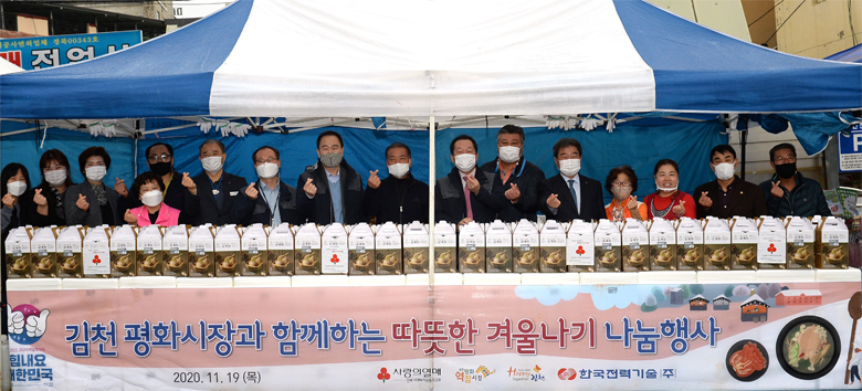 회사는 11월 19일 ‘2020 코리아세일페스타’의 일환으로 김천 평화시장 상인회 봉사단과 함께 김장김치와 삼계탕 나눔 행사를 개최했다.