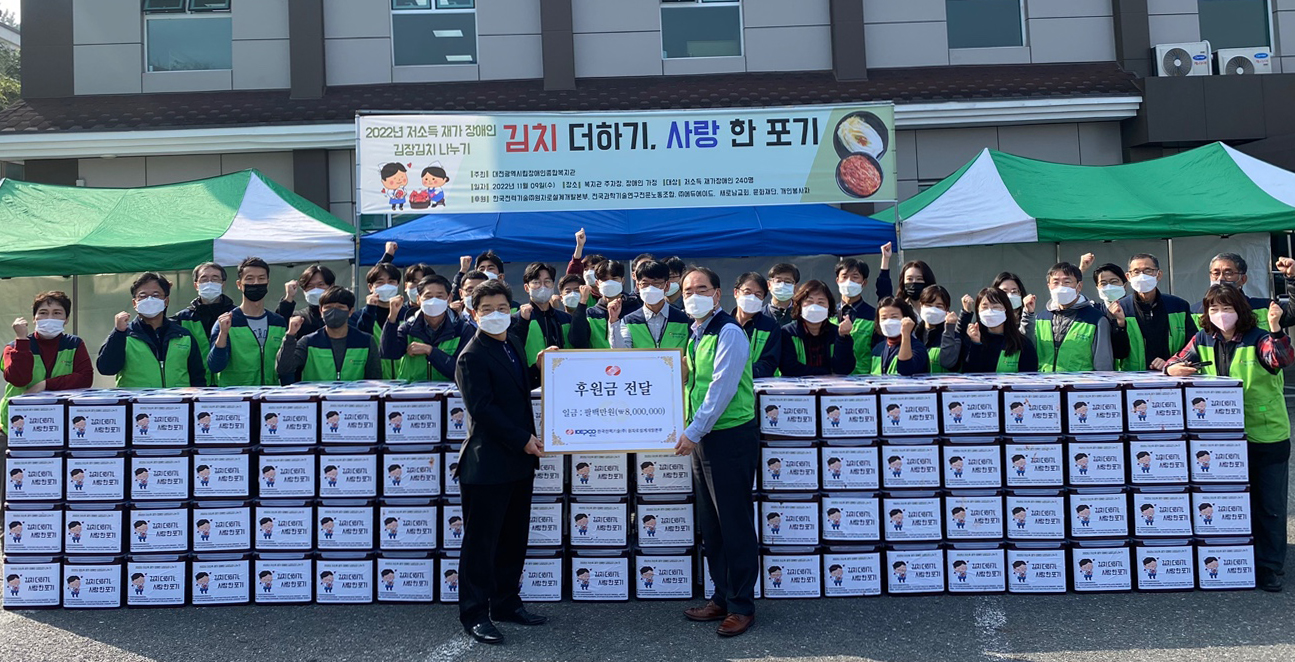 33명의 직원이 참여한 이번 행사는 저소득 재가 장애인 가정에 경제적 부담감 감소와 적절한 영양공급을 통한 안정적인 겨울 나기를 지원하기 위해 마련되었다. 봉사단은 복지관에서 김장김치를 직접 담그는 봉사활동을 펼치며, 절임배추 등 김장관련 재료 일체의 구매비용도 후원하였다. 만들어진 김장김치는 150 장애인 가정에 전달되었다.